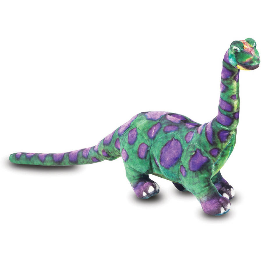 This amazing stuffed apatosaurus will delight any dinosaur lover! The dramatic colors enhance the excellent quality construction and attention to detail. Over three feet long, this dino will be loved throughout the ages!